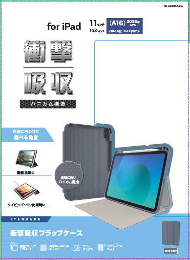 11インチ iPad(A16)、10.9インチ iPad(第10世代)用 フラップケース 衝撃吸収 Pencil収納 スリープ対応 ブルーグレー TB-A25RSABG
