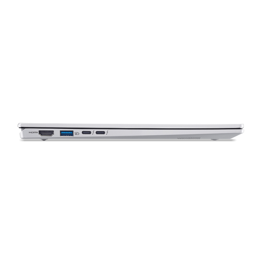 新しいSwift Go 14は、堅牢性、放熱性に優れたアルミニウムを纏い、最小高さ 約9.6mm(高さ約16.4mm)、重さわずか1.28Kgのボディに約13.5時間の長時間バッテリーを備えました。表面にはアルマイト(陽極酸化)処理を施し、高精度なレーザーエッチングによって新型Swiftの“スピード”が象徴的に描かれています。ミニマルでありながらプレミアムな佇まいを放ちつつ、洗練された印象に仕上げました。片手でラクに広げられる180°開閉ヒンジは薄型軽量ボディにふさわしく、颯爽と持ち出して趣味、仕事をこなす最適なパートナーとなることでしょう。