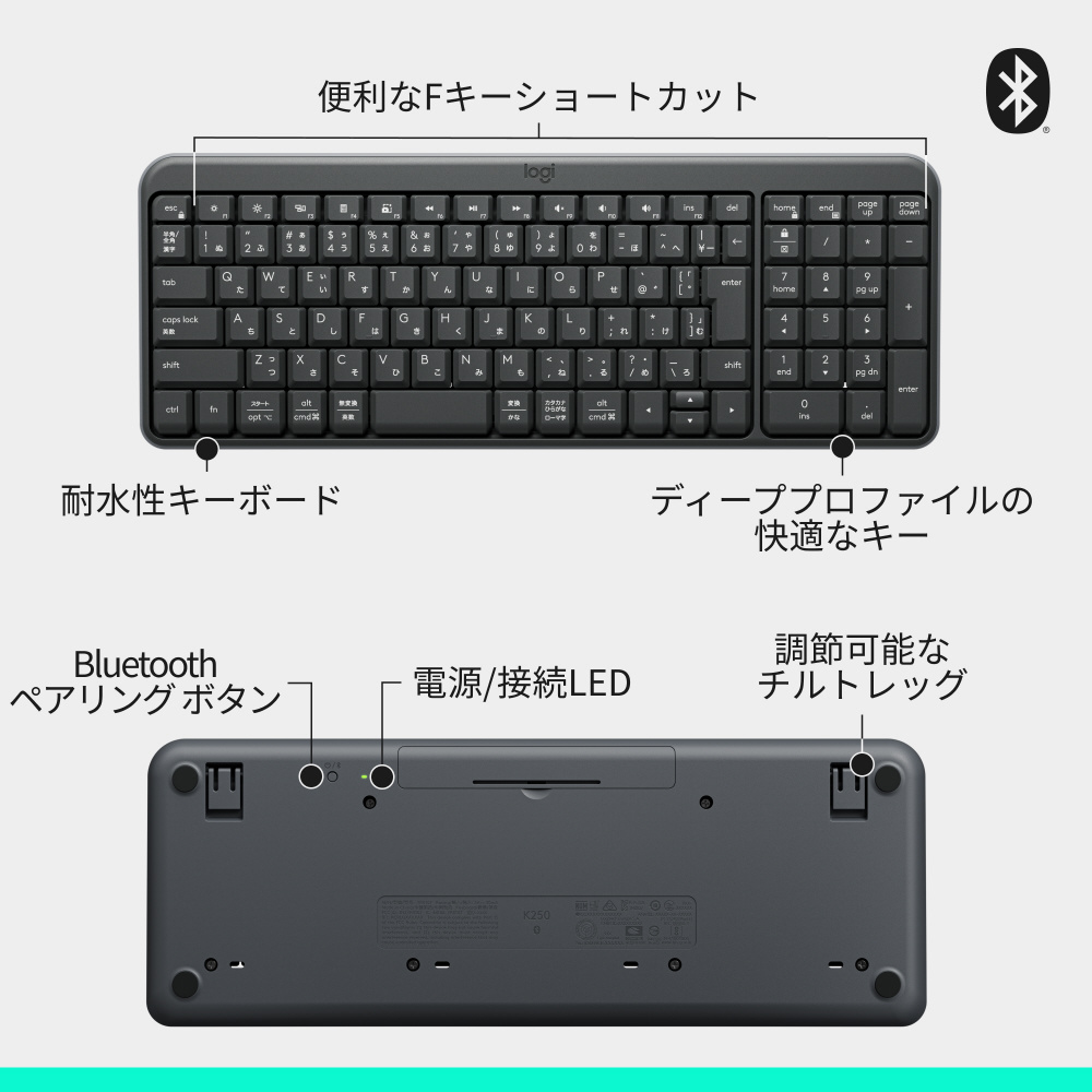 キーボード K250(Chrome/Android/iPadOS/iOS/Mac/Windows11対応) グラファイト K250GR [ワイヤレス /Bluetooth] 【864】