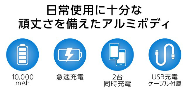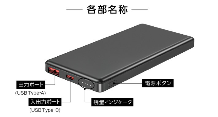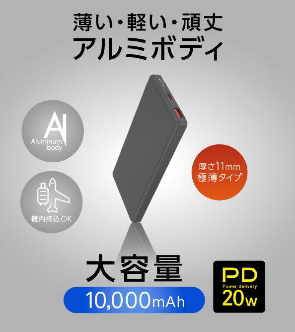 PD(USB Power Delivery)20Wの高速充電に対応したモバイルバッテリー