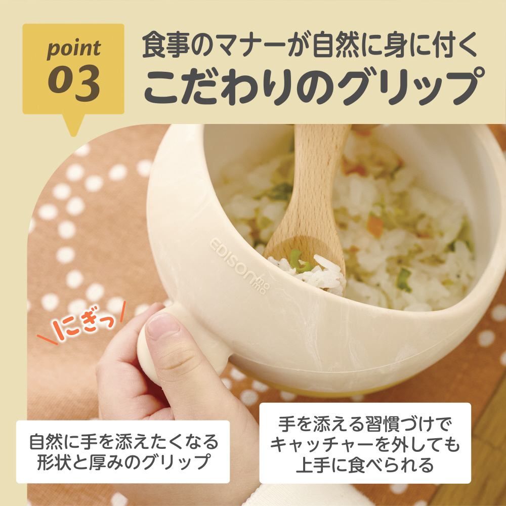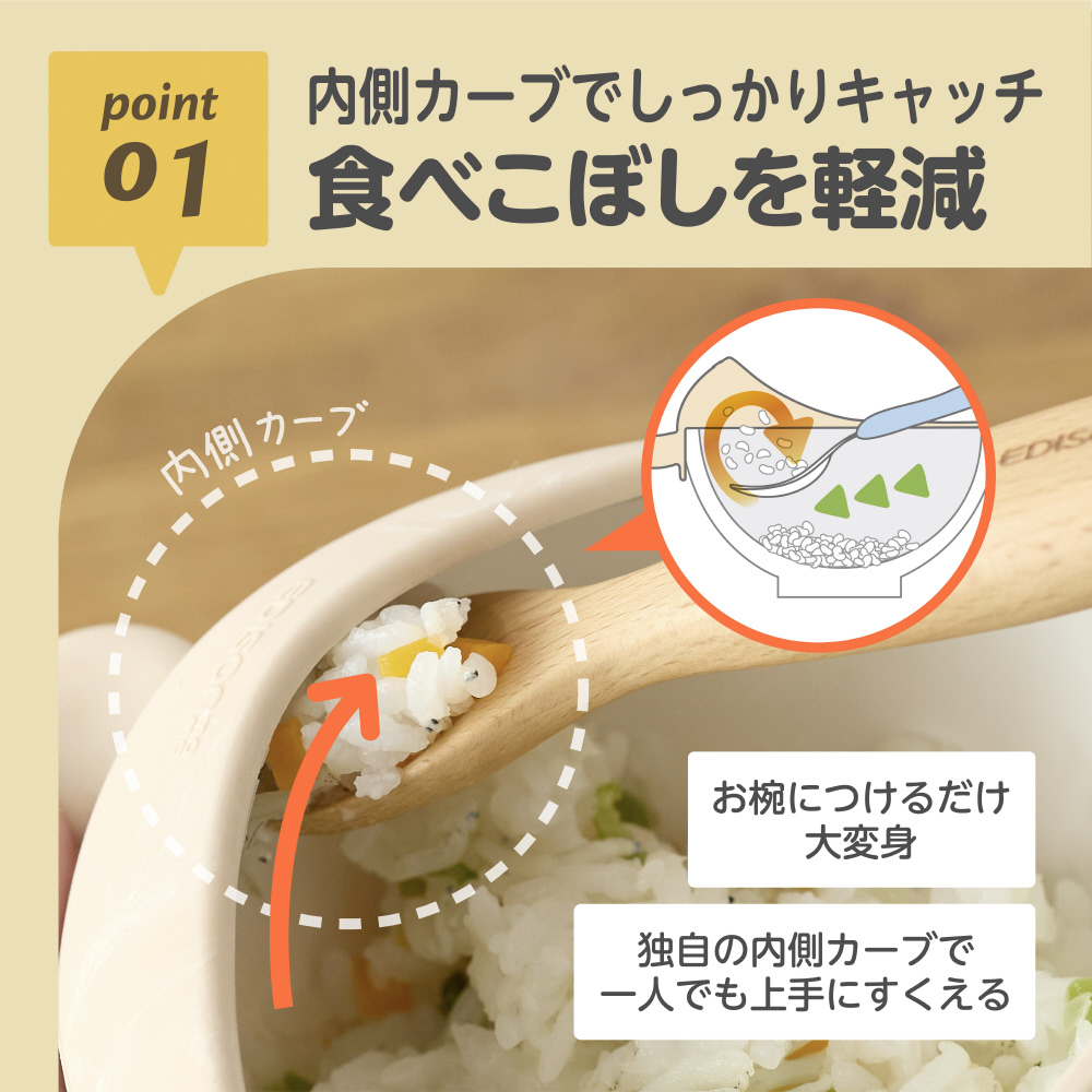 すくいこぼしを防げるので自分一人でも食べやすい。