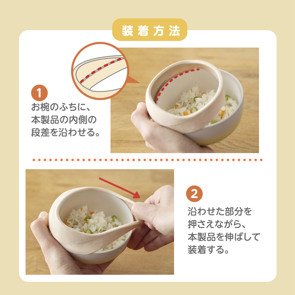 素材はシリコーン素材なので、伸縮性があるのでお家のお椀に取り付けるだけ。