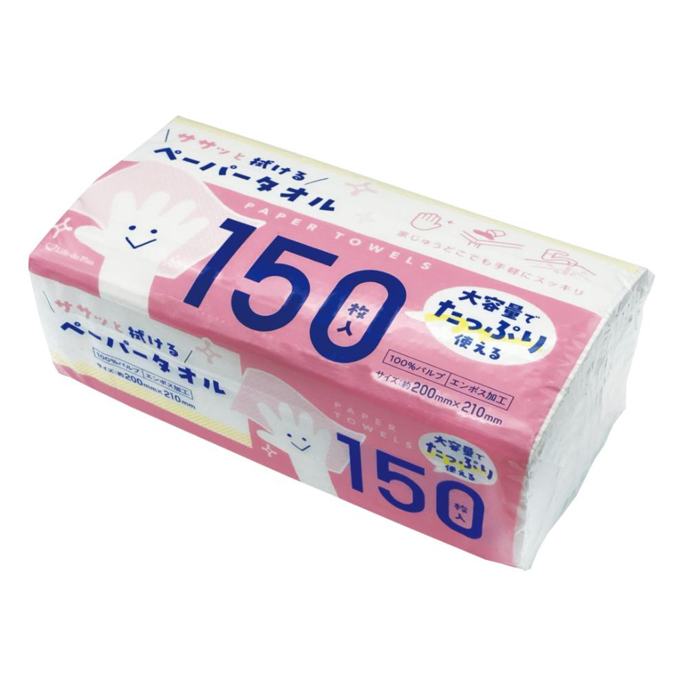 | 商品名 | ササっと拭ける ペーパータオル 150枚 100%パルプ エンボス加工 615678 |