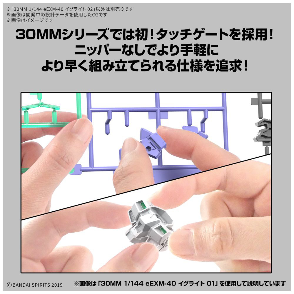 ■30MMシリーズとしては初のタッチゲートを採用。ニッパーなしでより手軽に、より早く簡単に組み立てられる仕様を追求。
