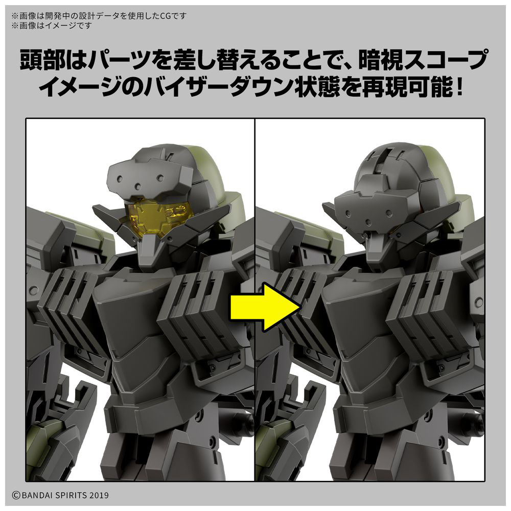 ■頭部はパーツを差し替えることで、暗視スコープイメージのバイザーダウン状態を再現可能。