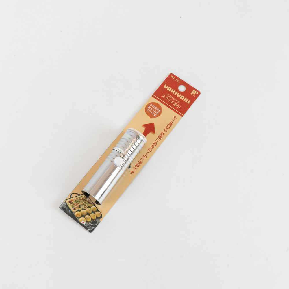 たこ焼器やプレートに油をひくのに便利です。余分な脂を使わないので、油の節約にもなりヘルシーな仕上がりに。刷毛の長さを変えられるスライド式。