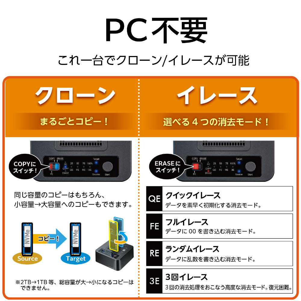 パソコンいらず!これ1台でクローンとイレースが可能なM.2 NVMe専用『裸族のお立ち台』
