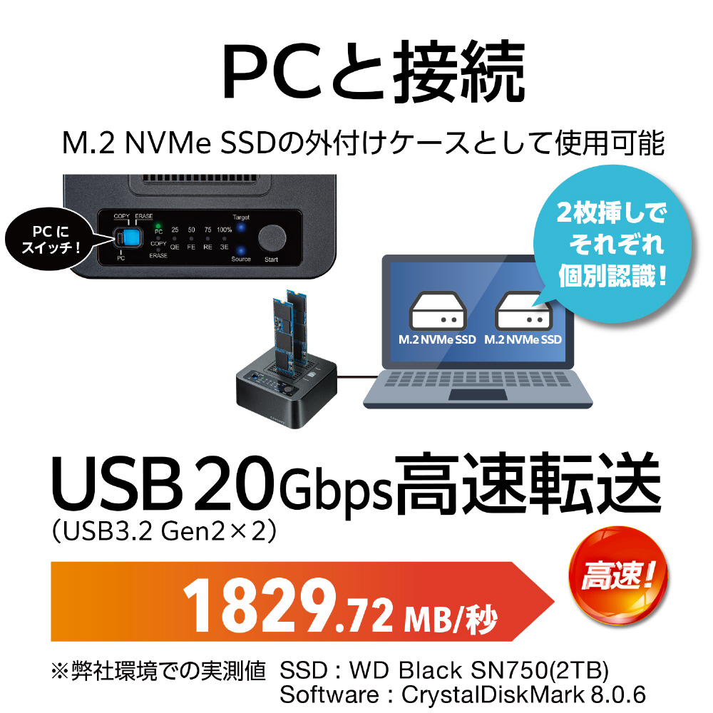 SSDスタンド USB-C接続 裸族のお立ち台 NVMe クローン&イレーサー(Mac/Windows11対応) ブラック CROM2NU20GCE [M.2対応 /NVMe /2台]