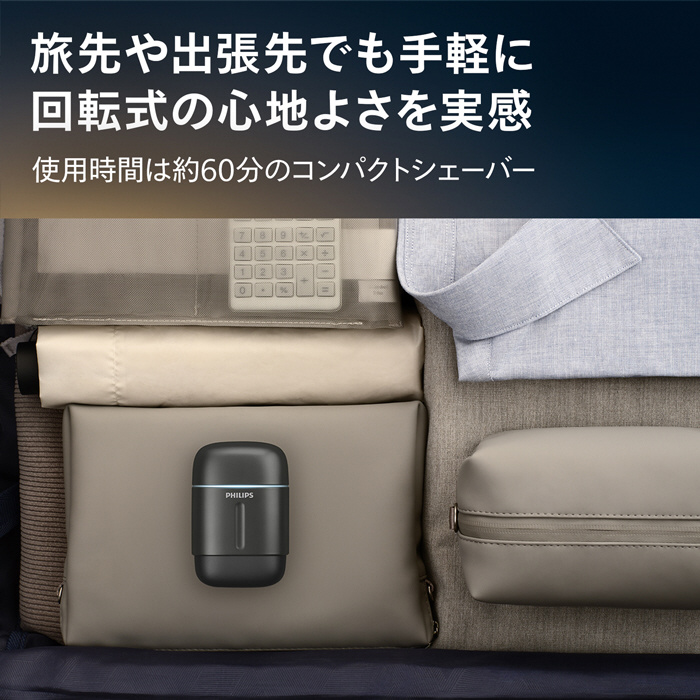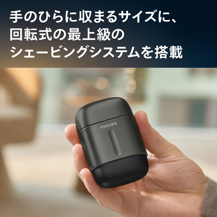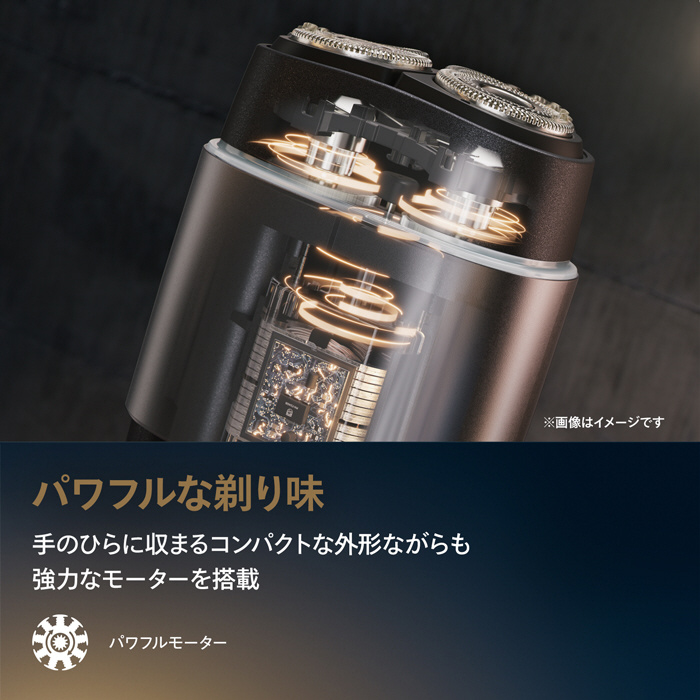 手のひらに収まるコンパクトな外形ながらも強力なモーターを搭載、パワフルな剃り味のシェービング体験を。