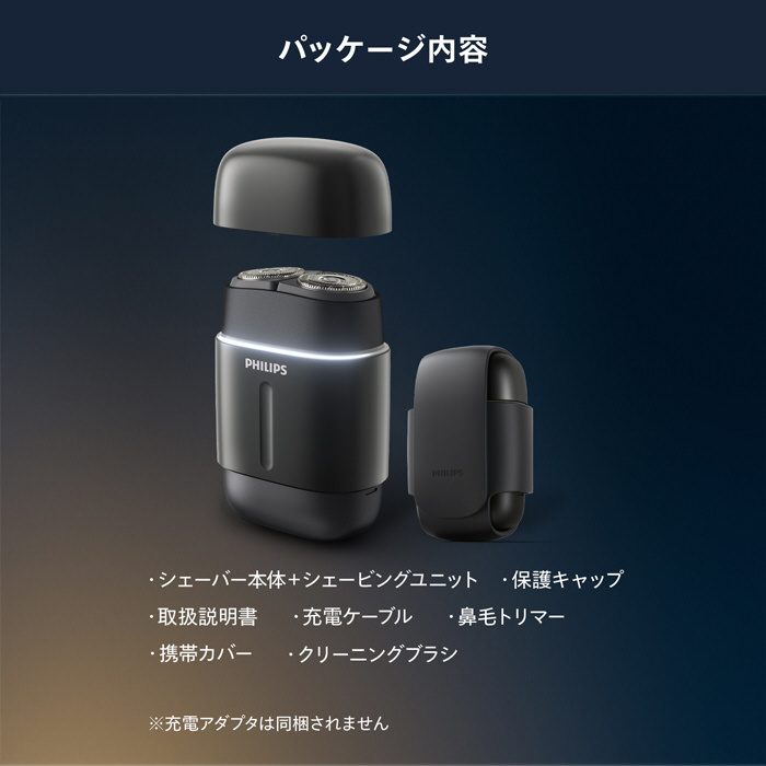 | 付属品 | シェービングユニット、保護キャップ、取扱説明書、充電ケーブル、鼻毛トリマー、携帯カバー、クリーニングブラシ |