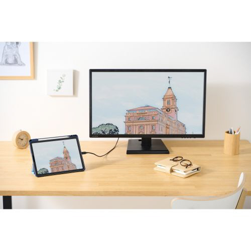HDMIポート搭載のディスプレイなどに映像を出力できる変換ケーブルです。USB Type-Cポート搭載スマートフォンなどの映像信号を、HDMIポート搭載ディスプレイなどに映像を出力することができ、画面複製と画面拡張に対応しています。