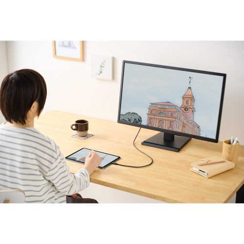 スマートフォンやパソコンなどの映像をディスプレイなどに出力できる、USB Type-C(TM)ポートをHDMI(R)プラグに変換するケーブルです。HDMIポート搭載ディスプレイなどに映像を出力することができ、画面複製と画面拡張に対応しています。