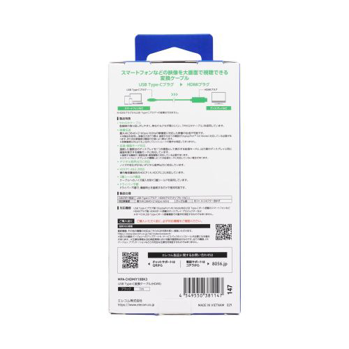 HDMIポート搭載のディスプレイなどに映像を出力できる変換ケーブルです。USB Type-Cポート搭載スマートフォンなどの映像信号を、HDMIポート搭載ディスプレイなどに映像を出力することができ、画面複製と画面拡張に対応しています。