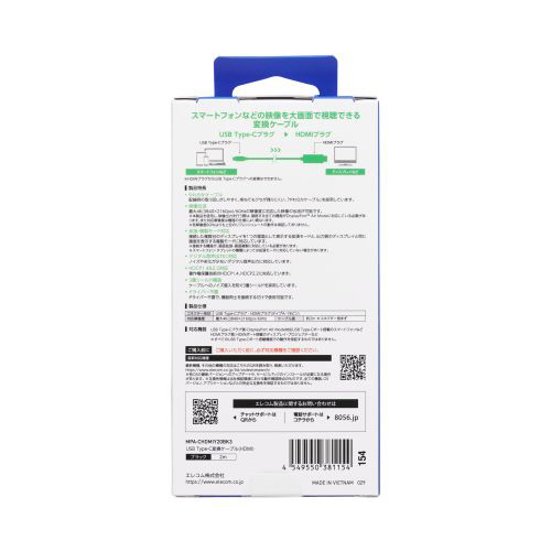 HDMIポート搭載のディスプレイなどに映像を出力できる変換ケーブルです。USB Type-Cポート搭載スマートフォンなどの映像信号を、HDMIポート搭載ディスプレイなどに映像を出力することができ、画面複製と画面拡張に対応しています。