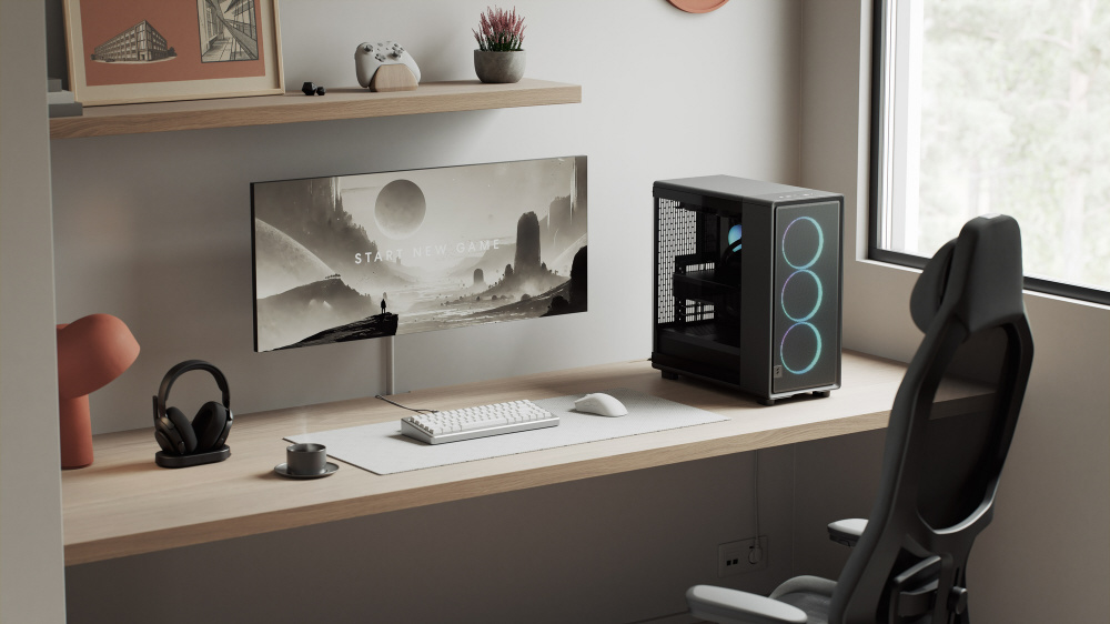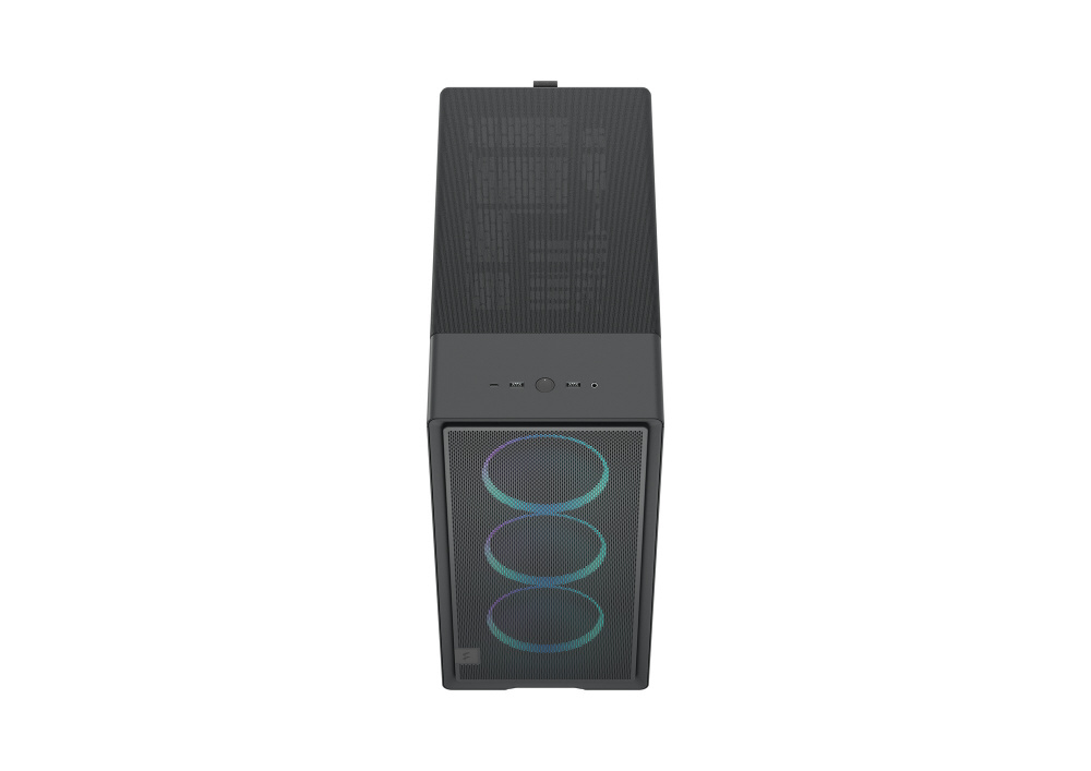 洗練されたクリーンなデザイン。3基のアドレサブルRGBファンを搭載し、高いエアフローを実現するミドルタワー型PCケース