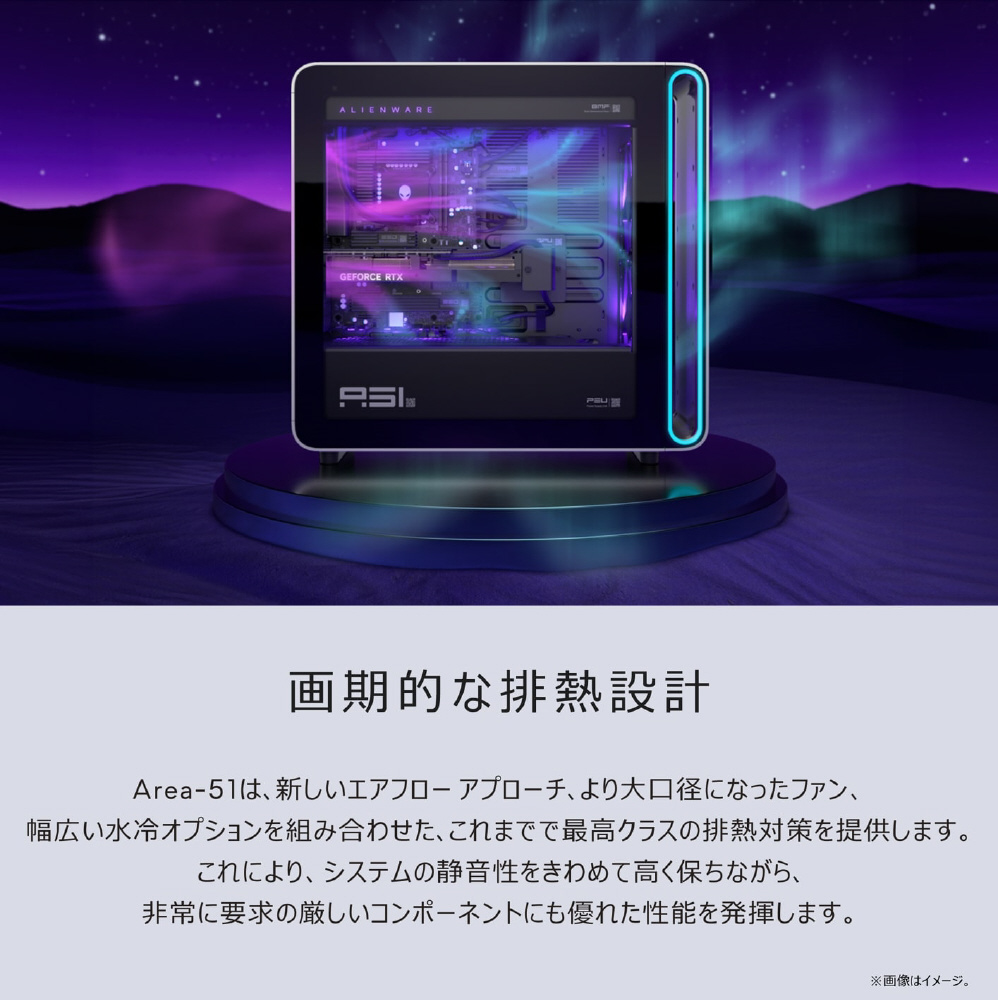 Alienware史上最もパワフルなデスクトップが復活:Area-51の進化したデザインとパフォーマンスが伝説級のゲーム体験を作り出します。