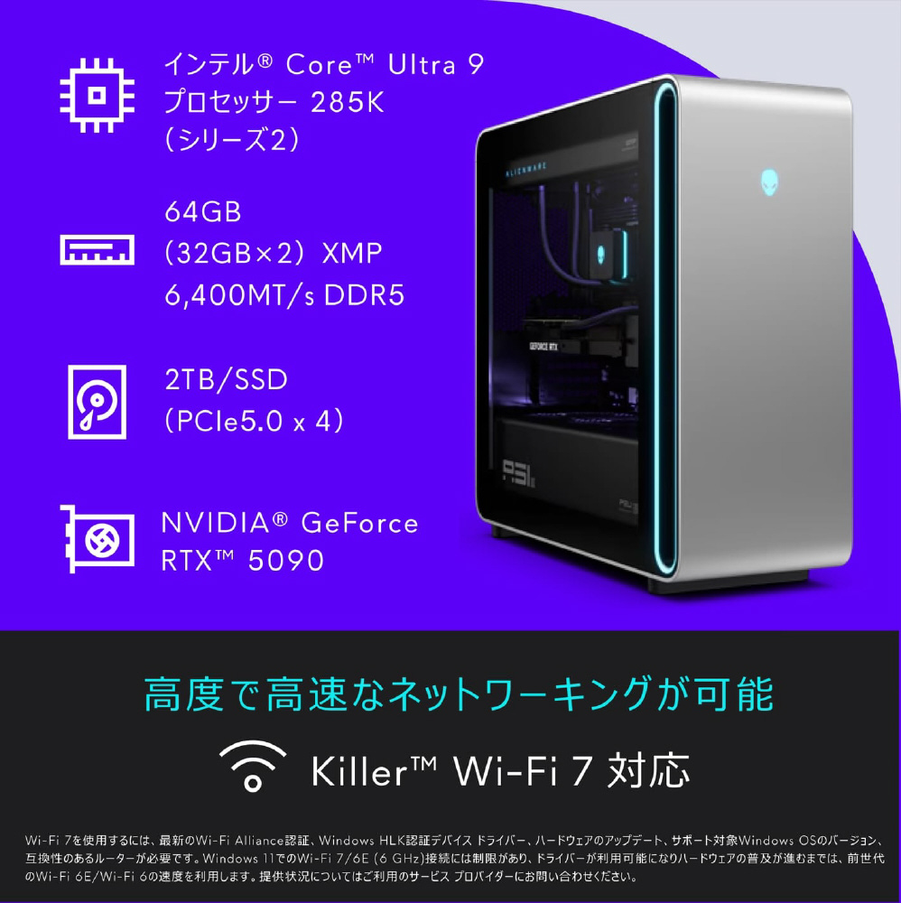 DAA100-FNC ゲーミングデスクトップパソコン Alienware Area-51 ルナシルバー [Windows11 Home /intel Core Ultra 9 /メモリ:64GB /SSD:2TB /2025年夏モデル]