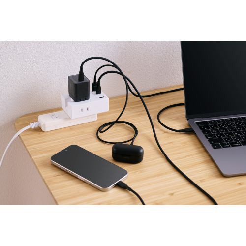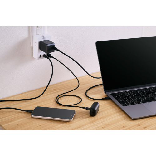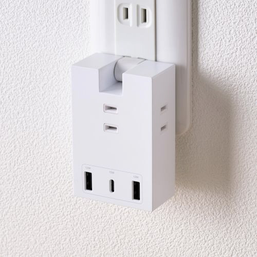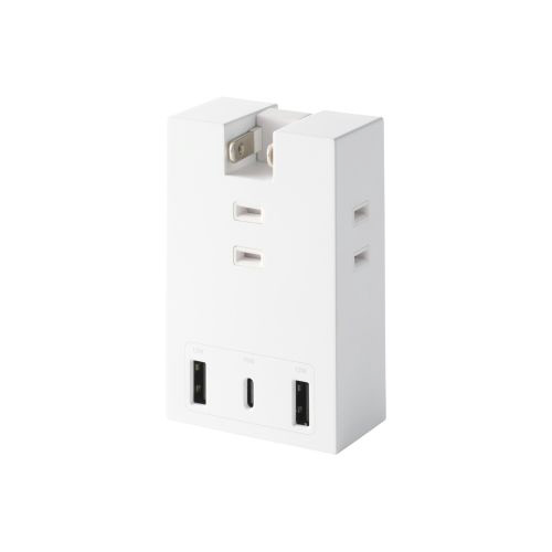ACタップとUSBポートが一体になった、スマートフォンやワイヤレスイヤホンなどを充電できるコンセント直挿しタイプのモバイルUSBタップです。ACアダプターなどを別途用意することなく、本製品1つで充電できます。