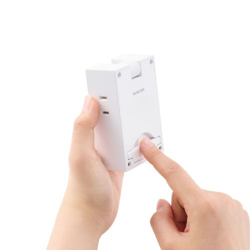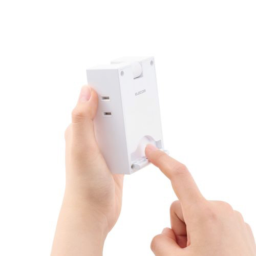 設置時にコンセントカバーと壁との段差でガタつき、プラグが抜けそうになるのを防ぐ「Support Bar」を搭載。段差を埋めることでプラグの根元にホコリが溜まりにくくなり、火災のリスクを低減します。可動式のため、未使用時はスッキリ収納できます。