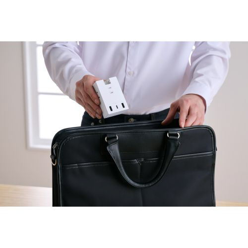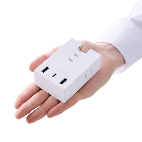 ACアダプター不要。スマートフォンやワイヤレスイヤホンなどの充電を、これ1台で。3つのAC差込口、2つのUSB-Aポート、1つのUSB Type-C(TM)ポートが一体になったモバイルUSBタップです。最大6台のデバイスを接続でき、コンセントの少ない場所で活躍します。設置時にコンセントカバーと壁との段差でガタつき、プラグが抜けそうになるのを防ぐ「Support Bar」を搭載しています。
