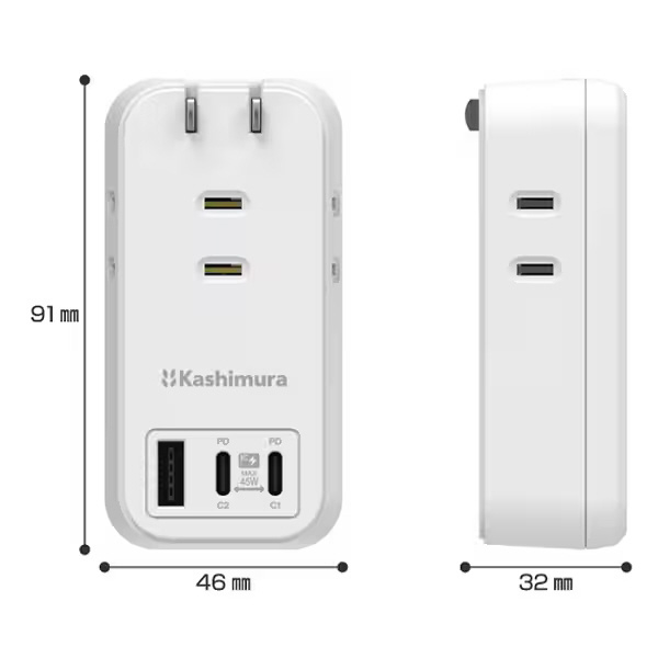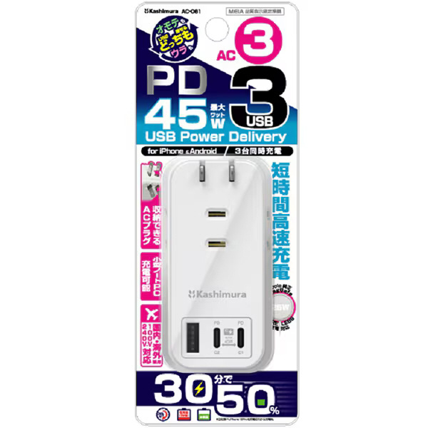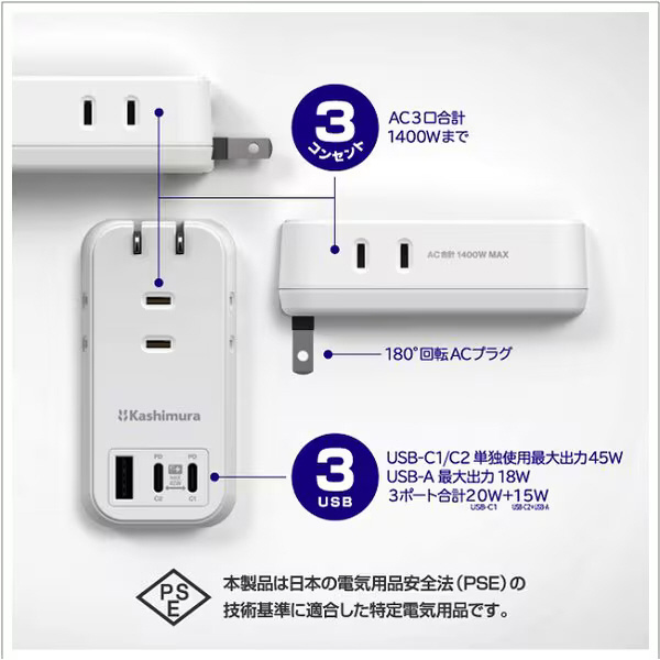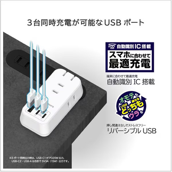 | 商品名 | 電源タップ AC3 USBA+C2 PD45W 自動識別 リバーシブル AC-061 【864】 |