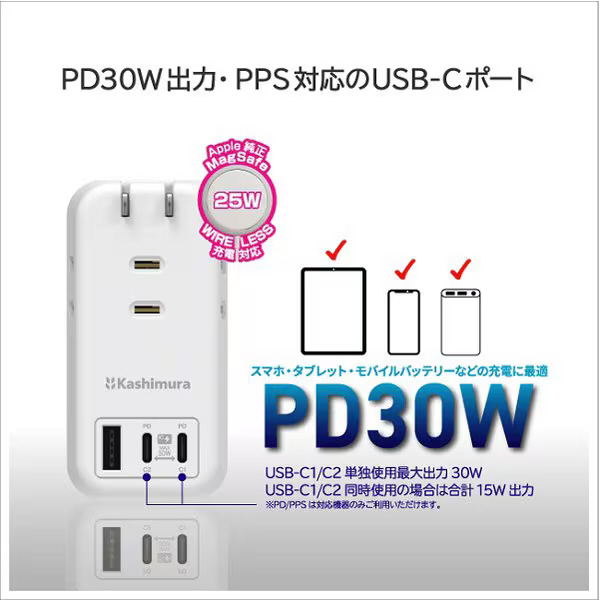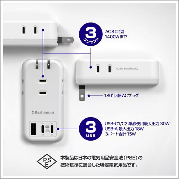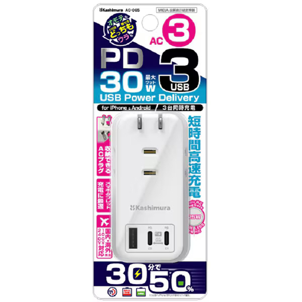 | 商品名 | 電源タップ AC3 USBA+C2 PD30W 自動識別 リバーシブル AC-065 |