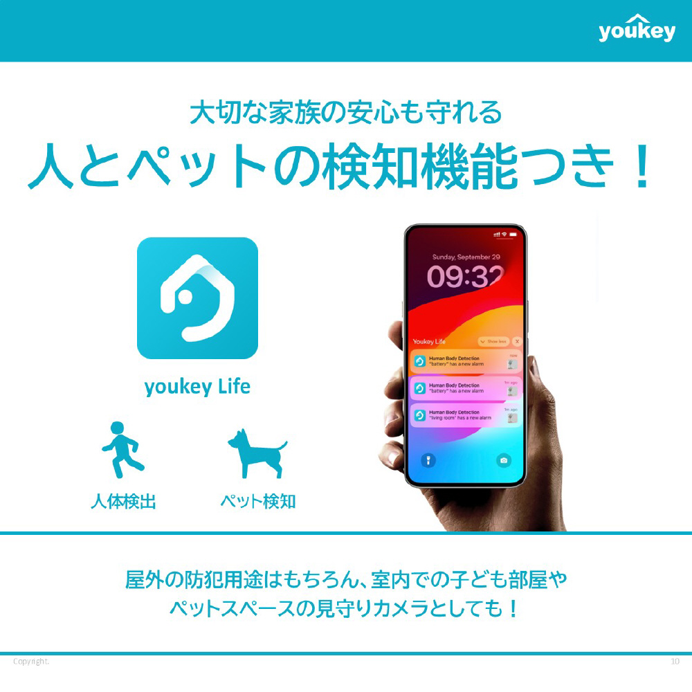 モーション検出、人体検出、ペット検出