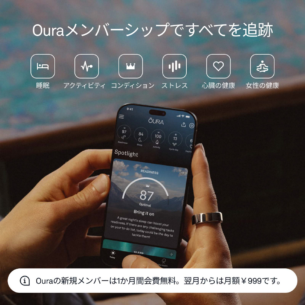 指先から、あなたの毎日を見守る。Oura Ring 4は、よりスマートに進化した指輪型のスマートデバイスです。心拍や体温、睡眠、活動量などを24時間計測し、アプリで健康状態を見える化。日々の体調管理をサポートします。