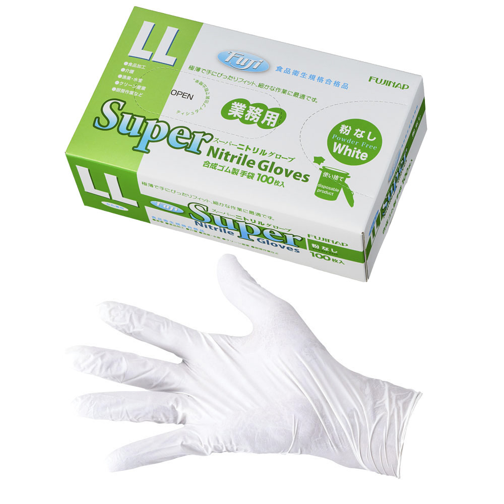 フジスーパーニトリルグローブ白(粉なし) LL(100枚入) <SNT0705>