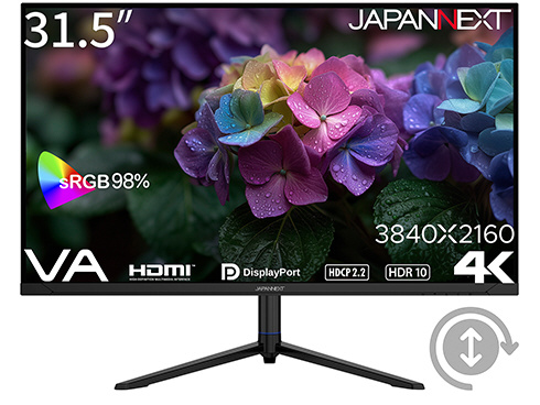 31.5インチのVAパネルを採用した4K(3840x2160)解像度の液晶モニターです。4KはフルHD(1920×1080)解像度の約4倍の作業領域を実現する3840×2160ドットの解像度となり、高精細な表示を実現できます。