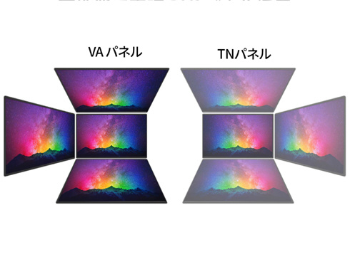 ■高画質VAパネルを採用。3500:1の高コントラスト比は、より黒をくっきりと表現をすることが可能、写真や動画を色鮮やかに映し出します。最大輝度350cd/m2の液晶パネルは、sRGB:98%の広色域に対応し、動画や写真も色鮮やかに美しく表示します。
