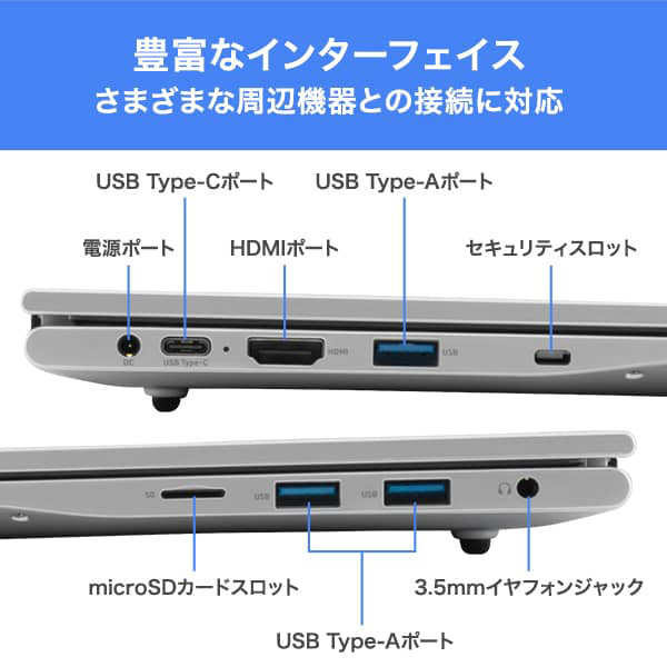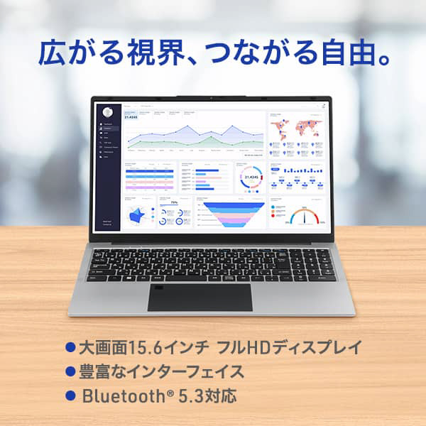 Windows 11 ProとIntelR N100を搭載した高コストパフォーマンスモデル。15.6インチ・フルHDの大画面、16GBメモリ&256GBストレージで作業が捗ります。レンズカバー付きカメラ・指紋認証センサー・セキュリティスロットを備え、プライバシーもしっかり保護。Bluetoothや豊富なインターフェイスでさまざまな周辺機器に接続でき、あなたの使い方にぴったり寄り添います。
