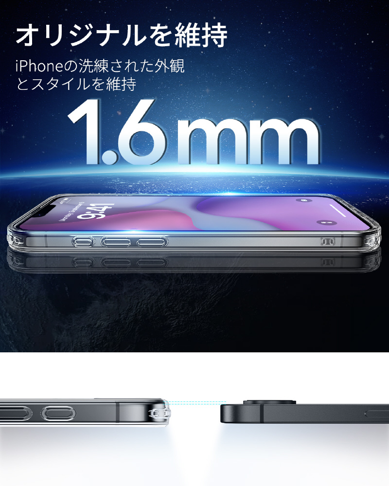 高品質PC素材とバイエルTPU素材を使用し、傷がつきにくく、透明度の高いアクリル製の背面により、iPhone 16e のオリジナルで洗練された本来の外観をキープします。TPUポリマーに弊社新研究のUV剤を添加されたで、ケースの黄変防止性能が大幅に向上させ、長い時間に使用しても光沢と透明感を維持することができます!この iPhone 16eケース は、デバイスを新しく見せ続けます