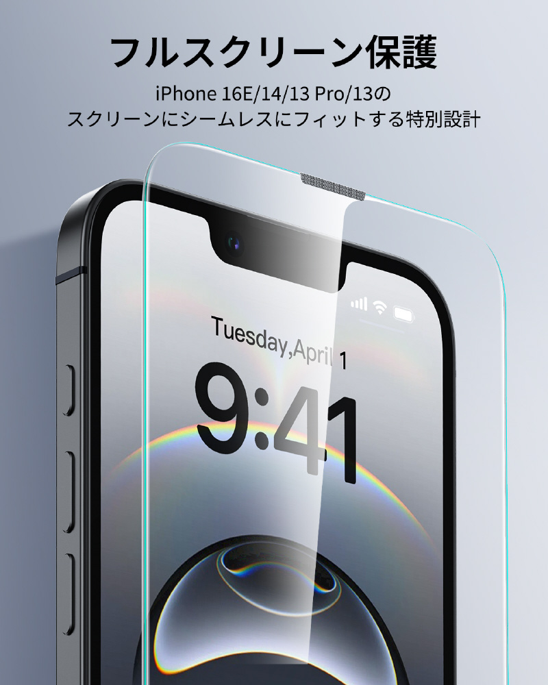 iPhone 16e/14/13/13 Pro 対応ガラスフィルム(2枚入り) UltraFit Classic Screen Protector for iPhone 16e