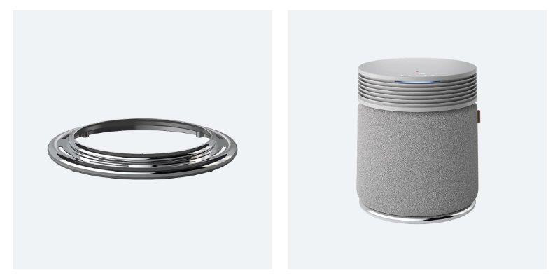空間に重厚感を与え引き締める、鏡面クロームの上質メタルベース。