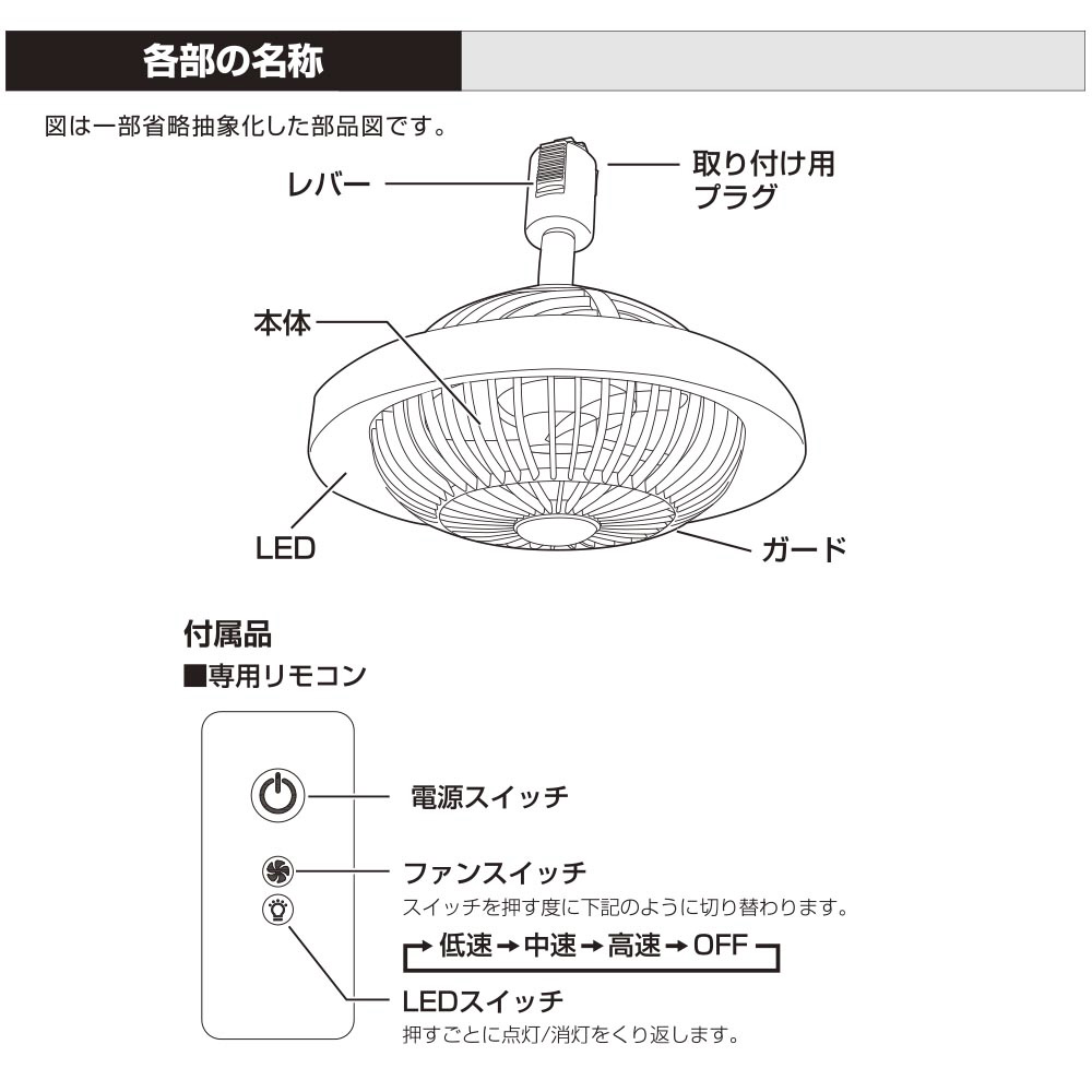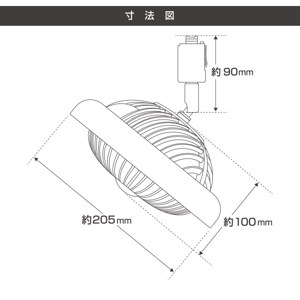 ライティングダクトレールに設置できるファン付きライト