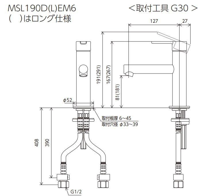 ●スリムボディ●取付穴径Φ33~37mmまたはΦ37~39mm●逆止弁なし●カラー:マットグレー