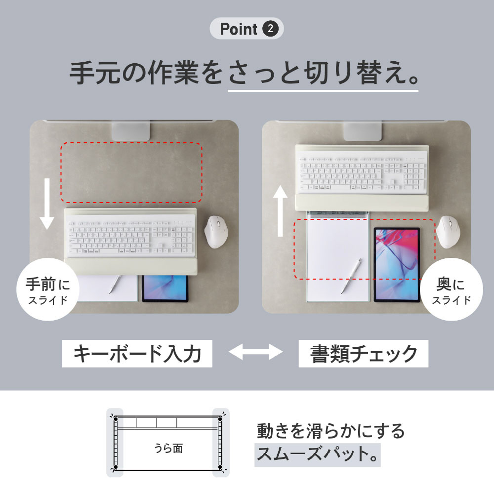 本体にキーボードを置くことで、キーボード下のスペースに書類などが入り、狭いデスクでも作業効率がアップします。