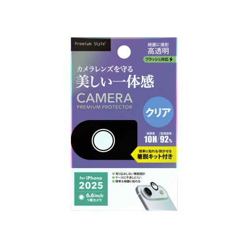 iPhone本体の美しさを活かすクリアタイプのiPhone Air用 カメラレンズプロテクターです。透過率92%・表面硬度10Hのガラスと薄くて耐久性に優れたアクリルで一体成形されており、端末本体のカメラレンズをキズ付けず、美しくカメラレンズを守ります。着脱キット付きで貼り付け・取り外しも簡単です。貼り付け時に便利なクリーニングクロス・ほこり取りシール付き。