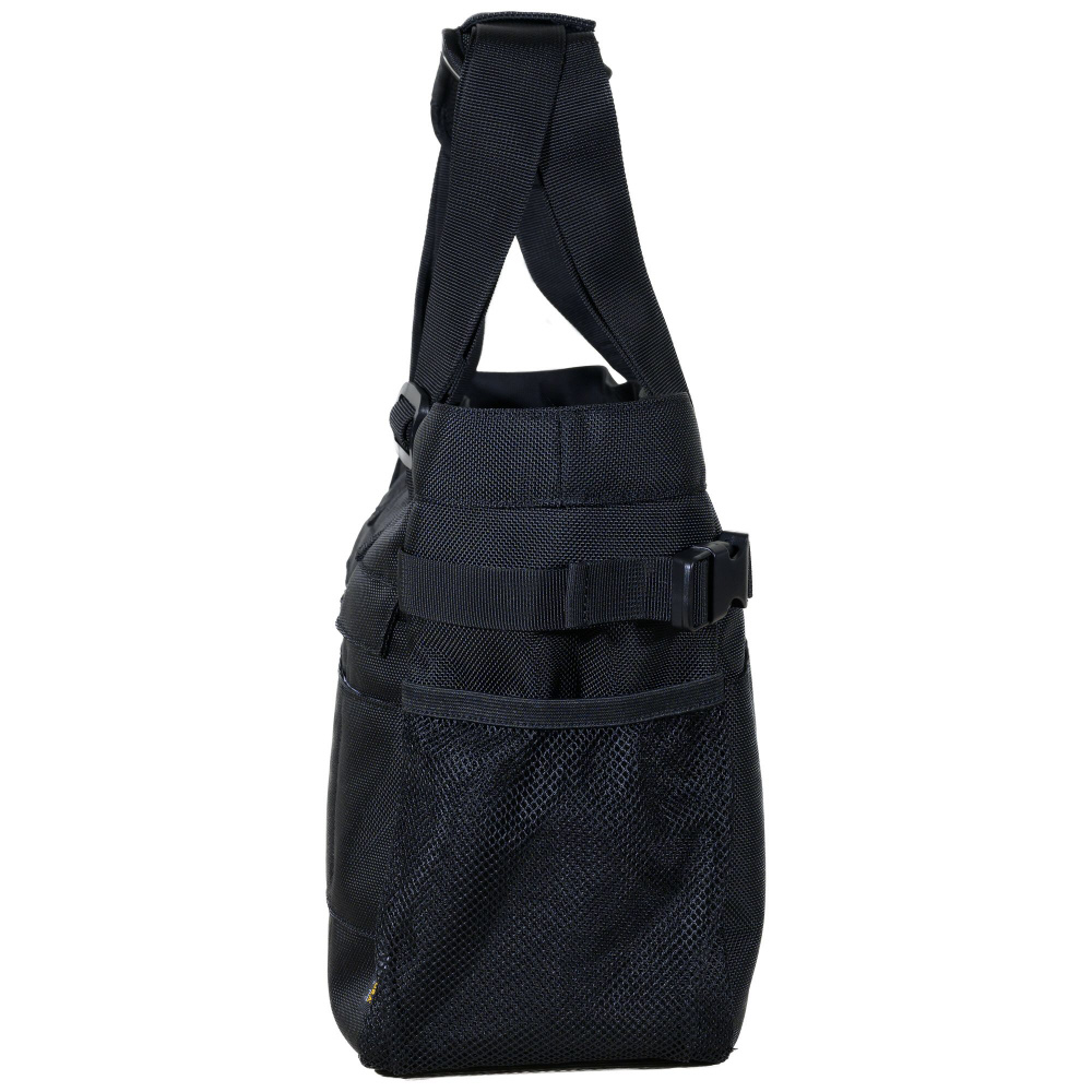 ペットボトルも収納できるメッシュサイドポケット、三脚も固定できるアジャスター付きサイドベルト、キャリーバッグへ固定可能な幅広のキャリーバーループ、取り外し可能なショルダーパッド、底面の汚れや水濡れにも安心な底鋲付き。