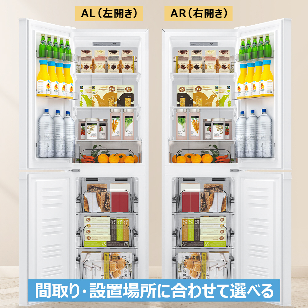 大容量ファン式冷蔵庫でたっぷり収納。