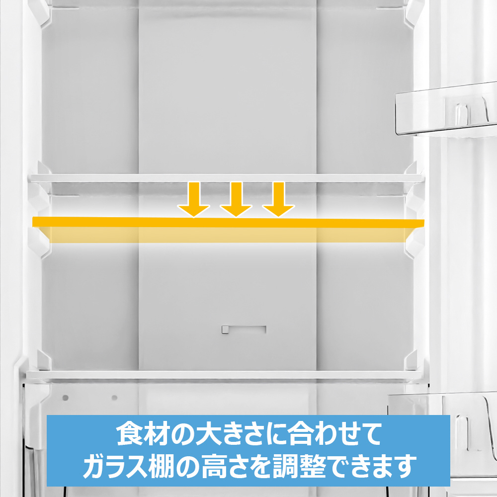 ●強化・クリアなガラス棚を採用し、高さ調整が可能です。