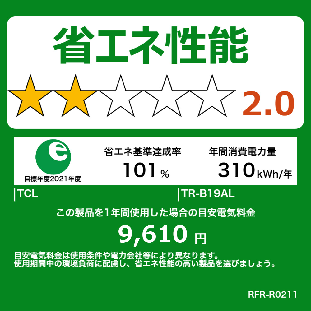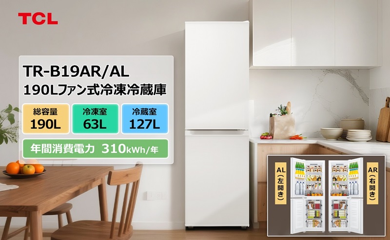 TCL 190Ⅼファン式冷凍冷蔵庫TR-B19AR/AL!毎日の新鮮を、あなたの冷蔵庫に!