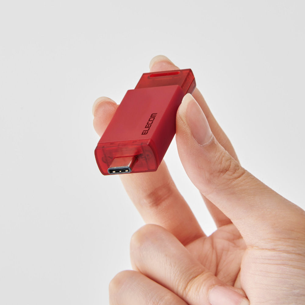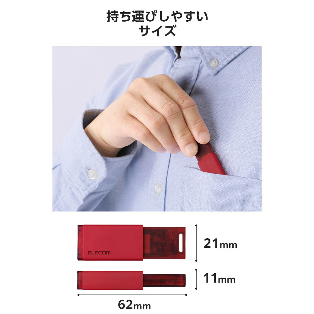 キャップを紛失する心配がないノック式で、パソコンなどの機器への接続がスムーズに。USBポートから引き抜くと自動でシャッターが開閉し、コネクター部分が収納されます。