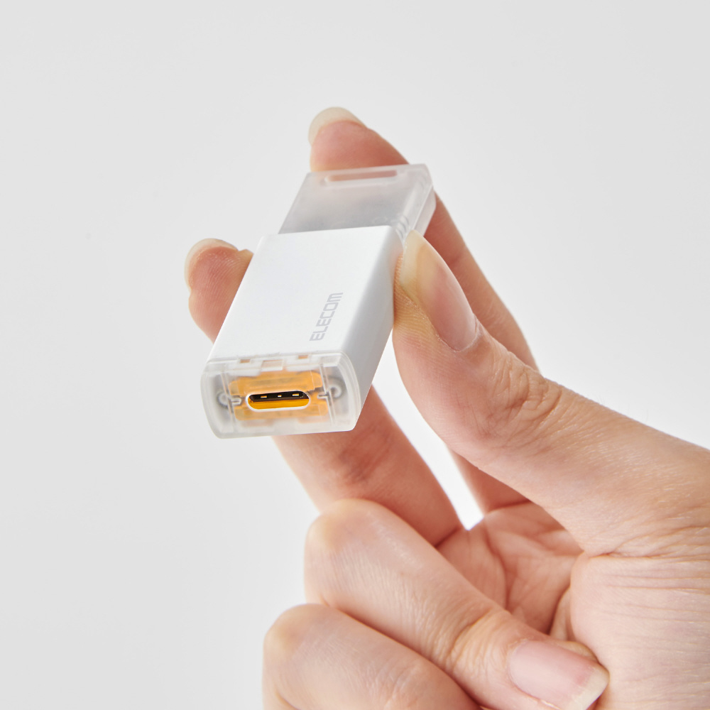 開封後、挿すだけですぐに使用可能。出荷時にexFAT形式でフォーマット済みのため、iPhone、Androidスマートフォン、Windowsパソコン、Macなどで挿してそのまますぐに使えます。ケーブルやアダプターなどを別途用意する必要はありません。