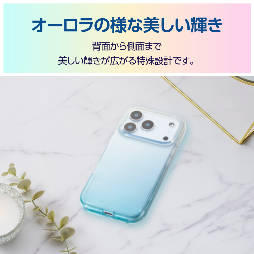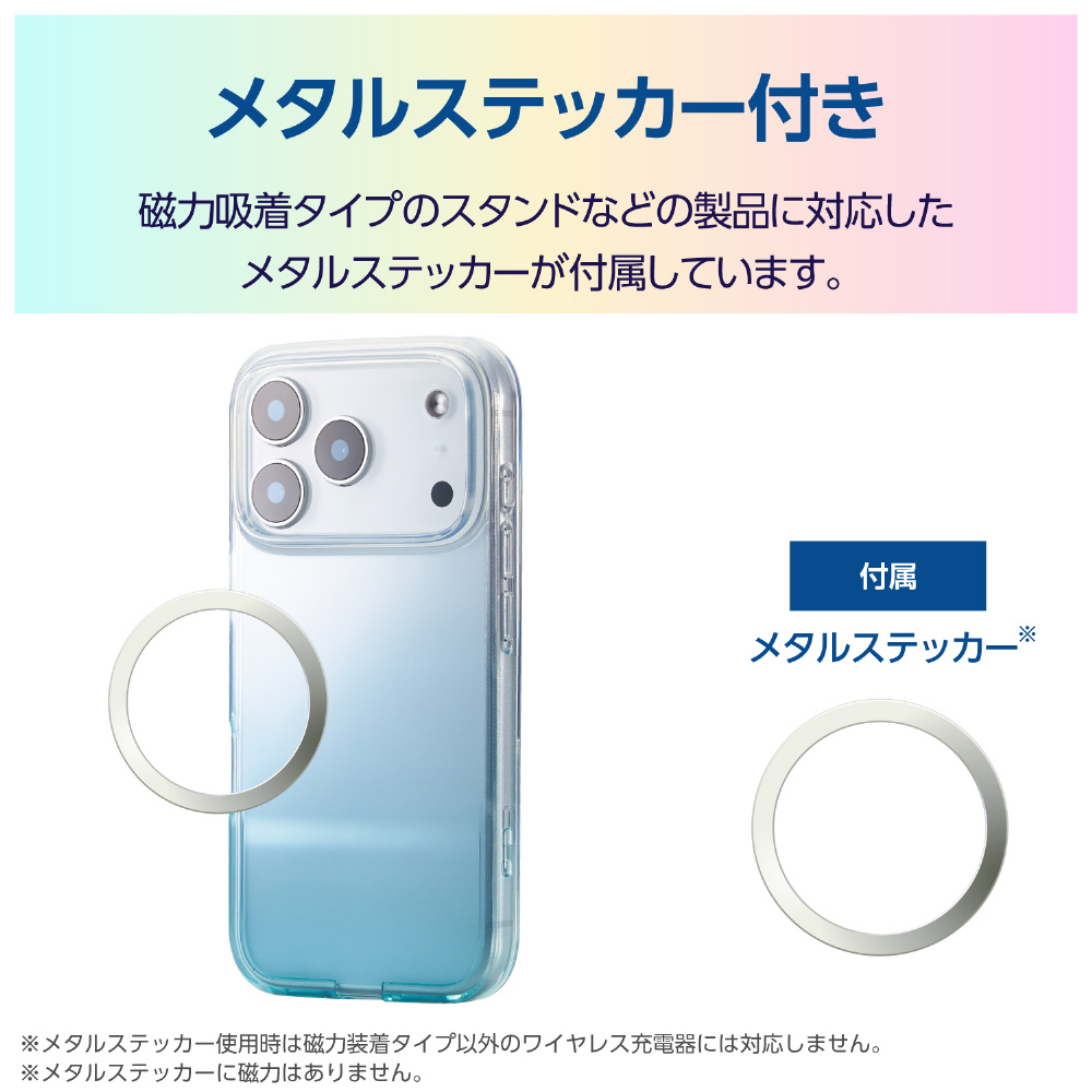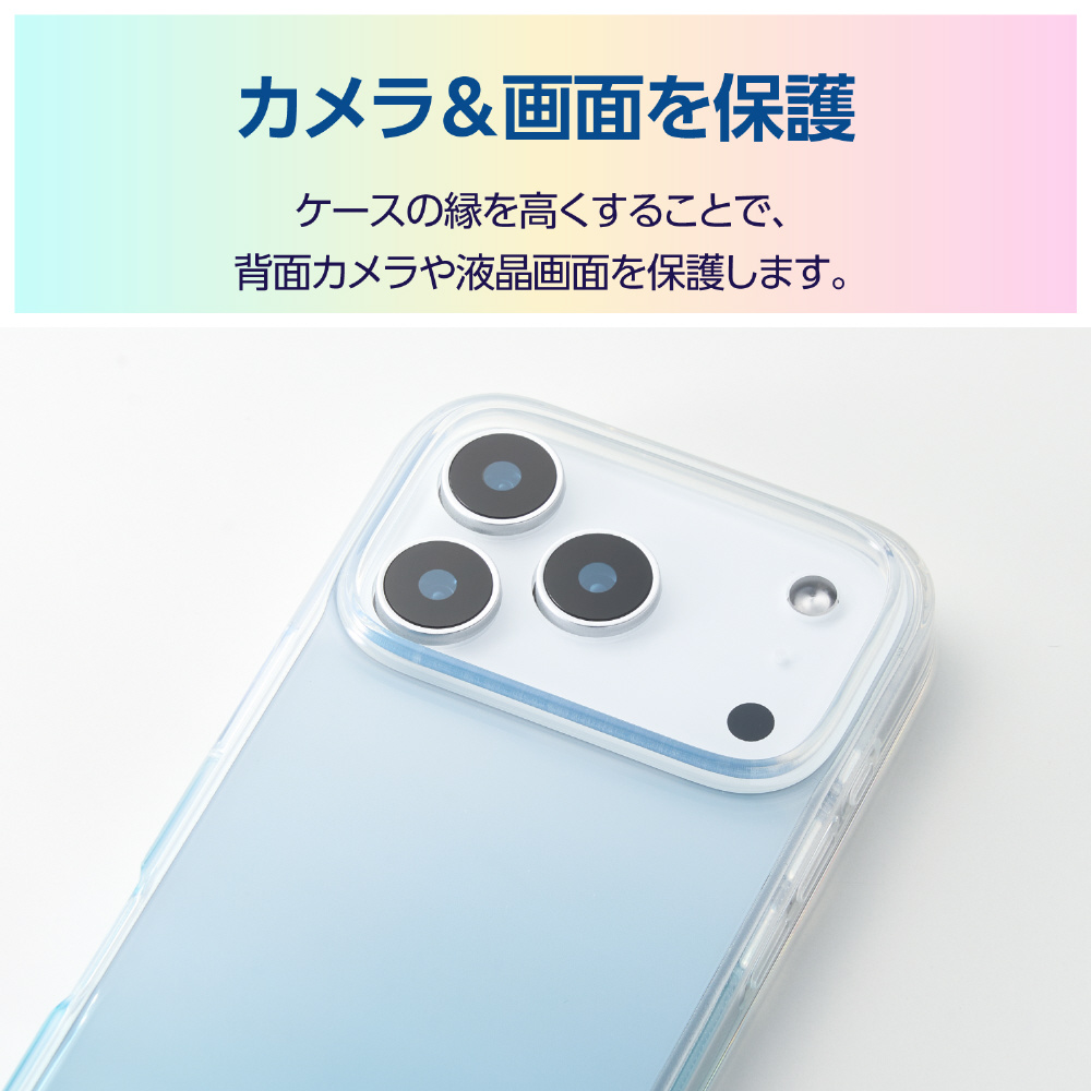 iPhone 17 Pro ケース ソフト ケース グラデーションカラー メタルリング付 ブルー PM-A25CUCWCBU