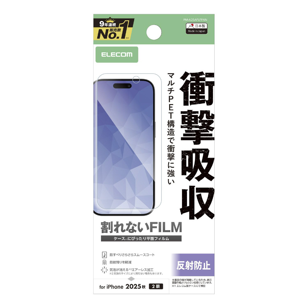 iPhone 17 フィルム 衝撃吸収 指紋防止 反射防止 クリア PM-A25AFLFPAN
