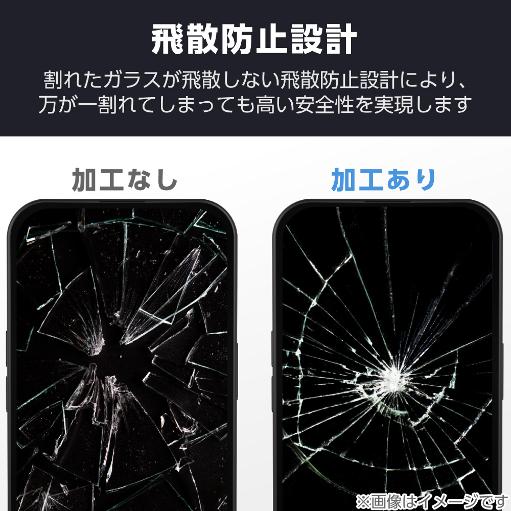 高硬度ガラスを更に強化。鉛筆硬度10H超のダイヤモンドコートにより傷に強い、画面保護ガラスフィルムです。 ※エレコム社画面保護ガラスフィルム製品内の比較