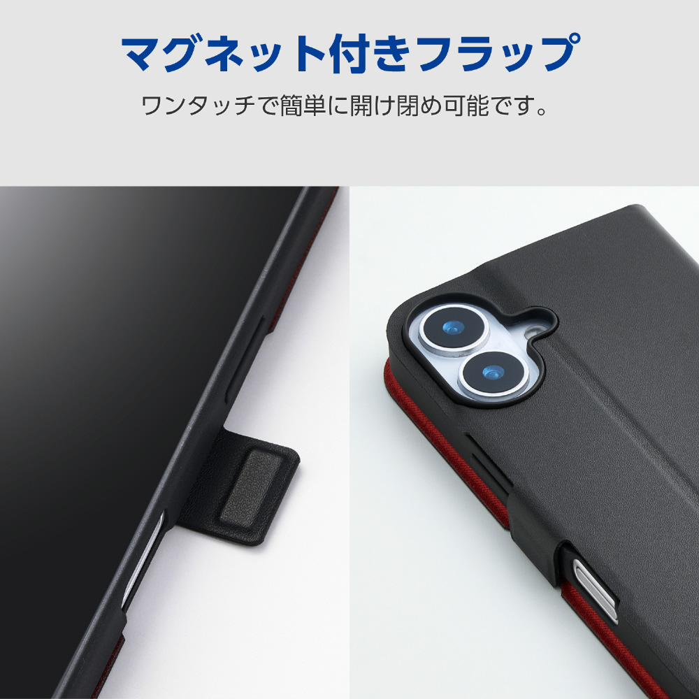 iPhone 17 ケース ソフトレザーケース 薄型 磁石付 ブラック