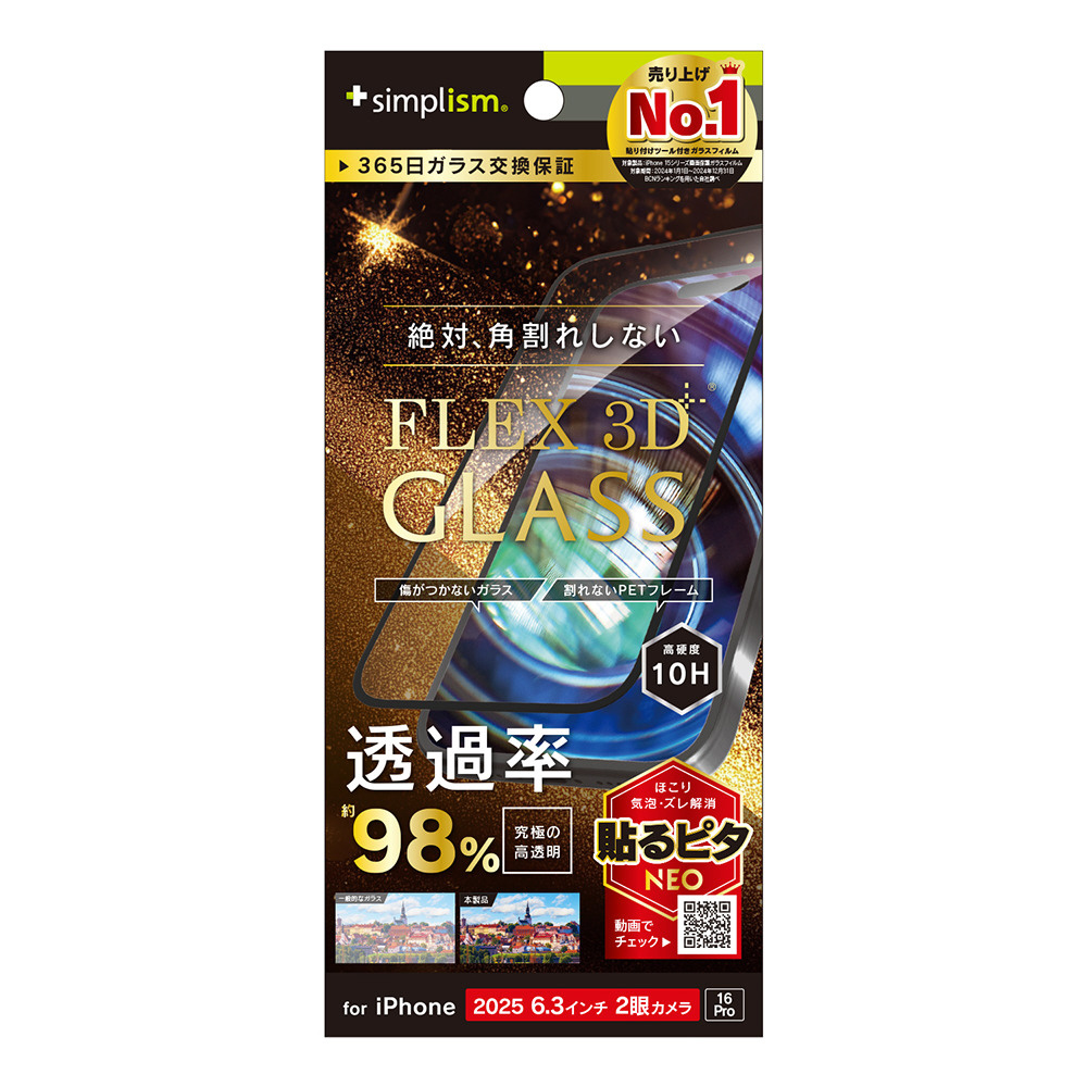 iPhone 17 フィルム [FLEX 3D] 究極の透明感 アルティメットクリア 複合フレームガラス ブラック TR-IP25M2-G3-C4ARCBK